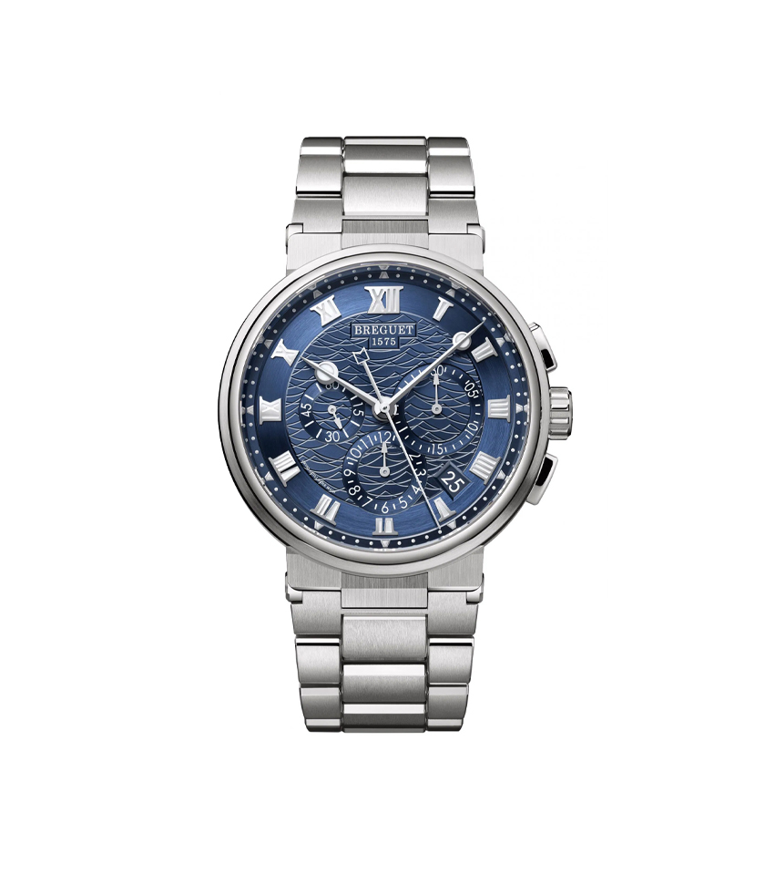 Three counters placed between 3 and 9 o’clock display the timed minutes, hours and small seconds. The chronograph hand is recognisable thanks to a subtle marine detail, whereas the time is indicated by the classic Breguet hands. Just like the numbers and the markers, they are luminescent, making it easy to read the time, even in poor lighting conditions.”