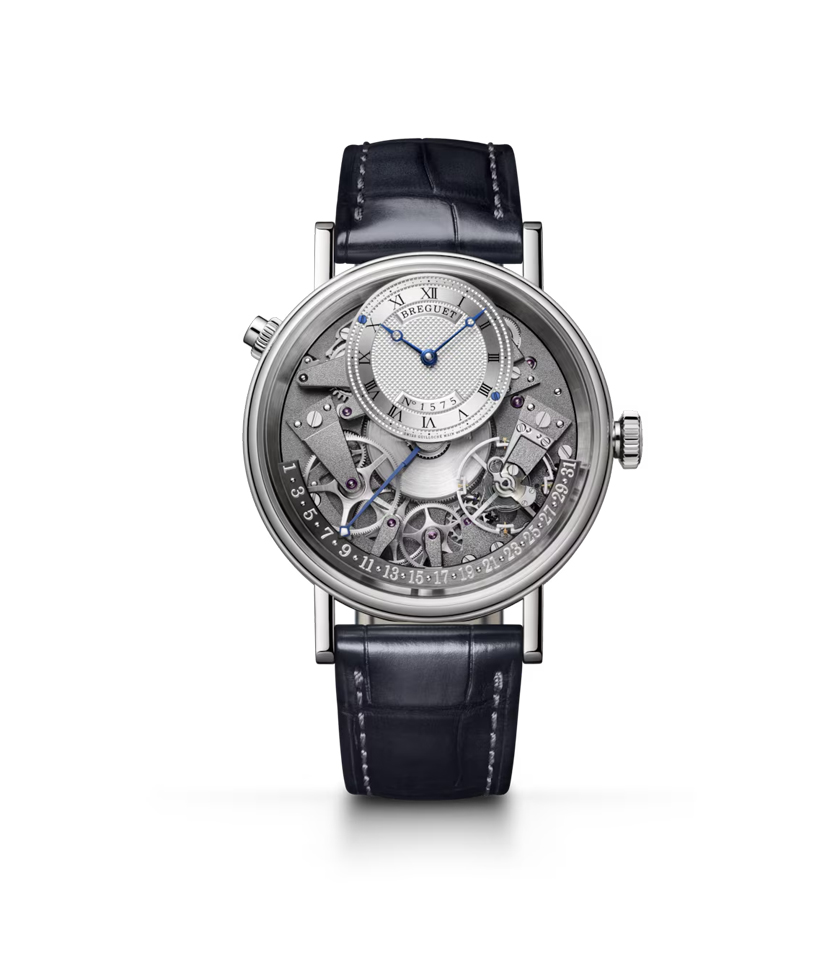 “Watch collection that pays homage to Abraham-Louis Breguet’s historical creations, particularly the “souscription” and “tact” watches. These watches feature an off-centered dial showcasing traditional Breguet hands for hours and minutes, with a retrograde date complication displayed between 3 and 9 o’clock.“