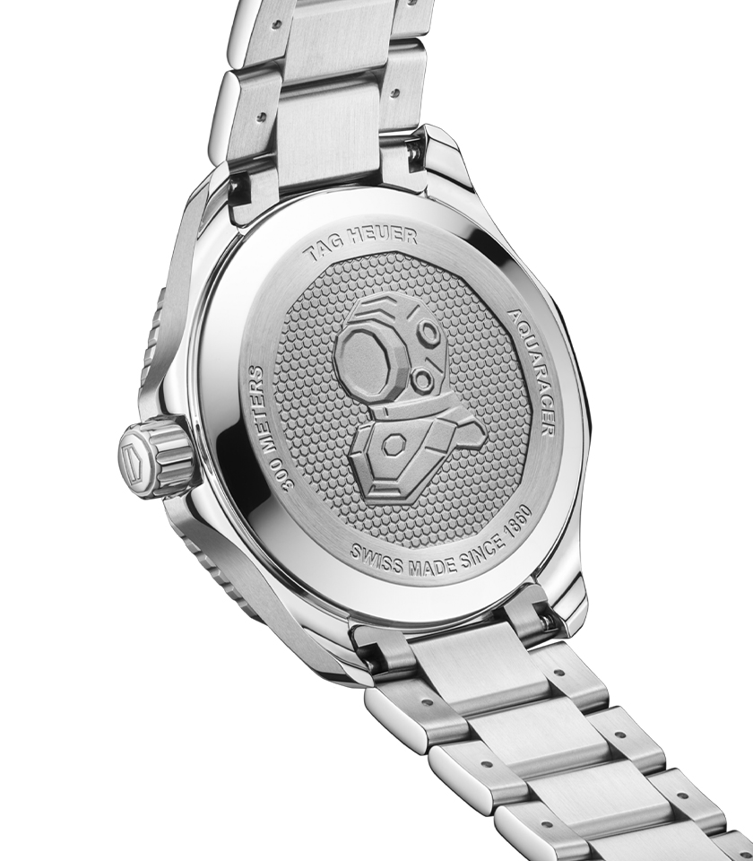 “The new Aquaracer Lady launched in 2014 retains the classic features of the Aquaracer watches but also features ultra-feminine and luxury finishes. The watches come in 27 mm and 32 mm cases with white mother of pearl, black, and silver dials ensconced inside. Some of the models showcase 11 Top Wesselton Diamonds on the dial along with 30 larger diamonds encrusted on the bezel.”